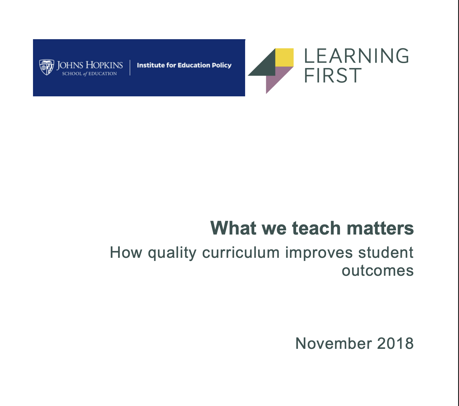 Report written in collaboration with Dr David Steiner, Executive Director of the Johns Hopkins Institute for Education Policy.